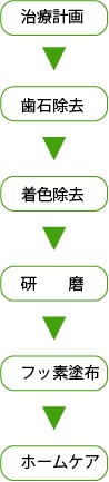 重炭酸ナトリウム塩をプロフィージェットと呼ばれる専用の器具から吹き出して、歯の表面に付着しているヤニや茶渋などの着色を取り除きます。