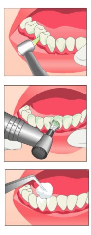 次に、専用のジェル(フッ素配合)を使って歯と歯の間や表面を1本づつ丁寧に磨きます。